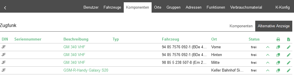 Damit in einer Komponentengruppe wieder innerhalb der Spalten sortiert werden kann, wurde die alternative Anzeige überarbeitet. In dieser Anzeige werden wir in einem nächsten Schritt auch die aufaddierten (km)-Leistungen pro Komponente anzeigen. Es geht voran !